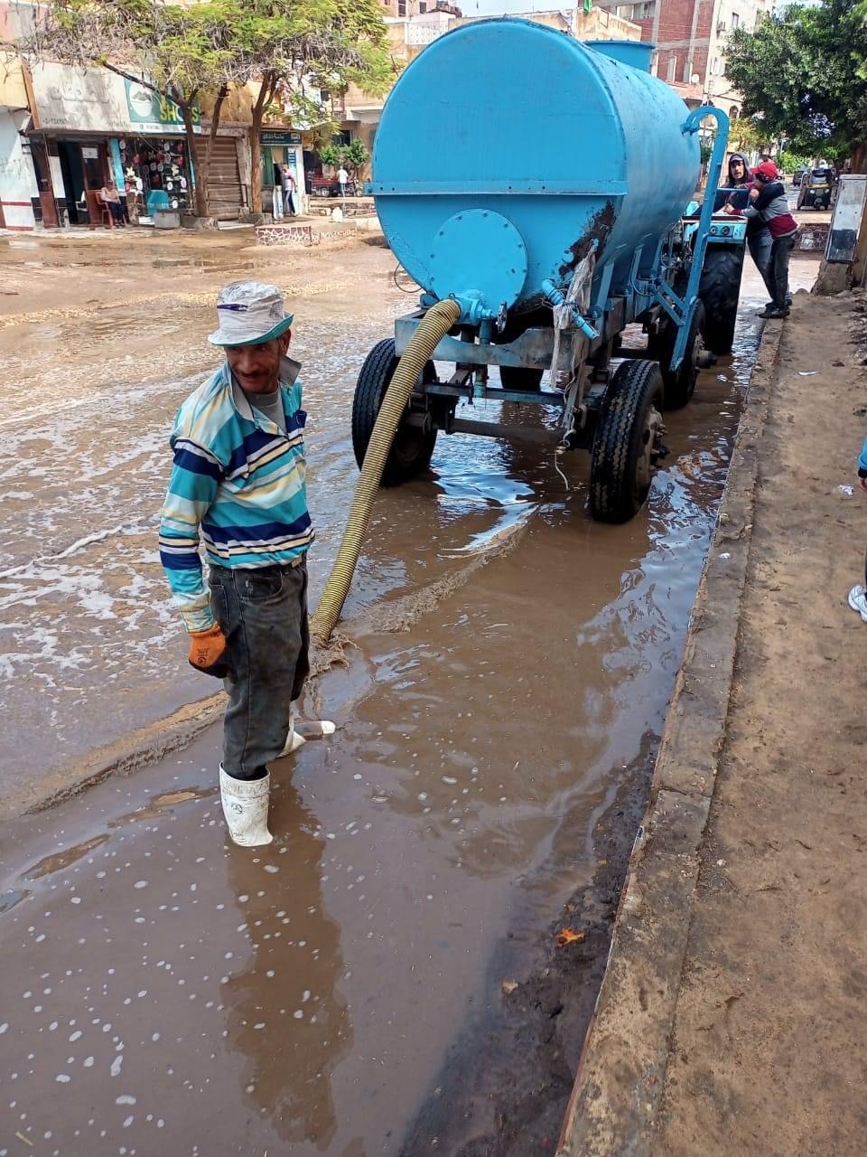 شفط وكسح تجمعات مياه الأمطار بعدد من المراكز بالدقهلية