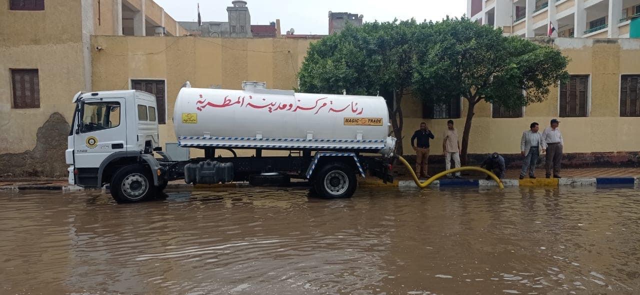 وبدأ على الفور إجراءات التعامل مع شفط وكسح تجمعات مياه الأمطار بمدينة المنصورة ومركز ومدينة المطرية، وبعض المدن بنطاق محافظة الدقهلية من خلال فرق العمل بالشوارع والميادين، بالتعاون مع شركة مياه الشرب والصرف الصحي.