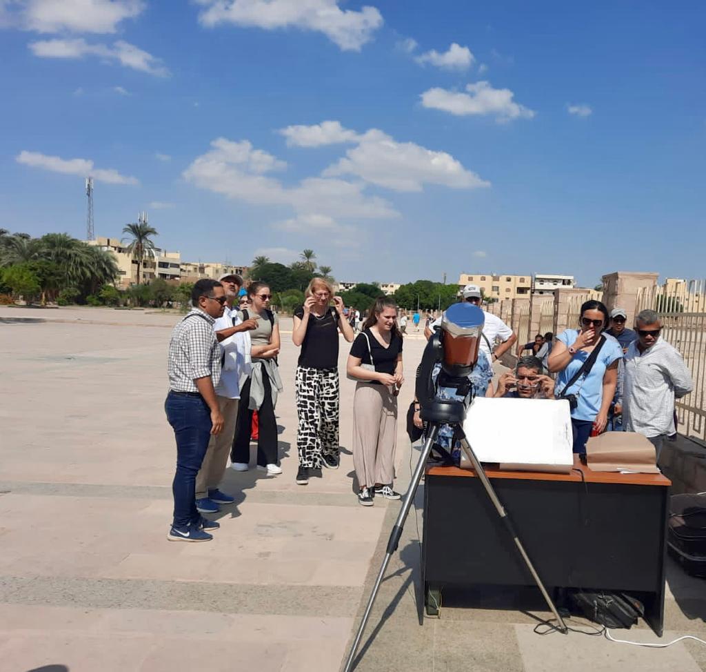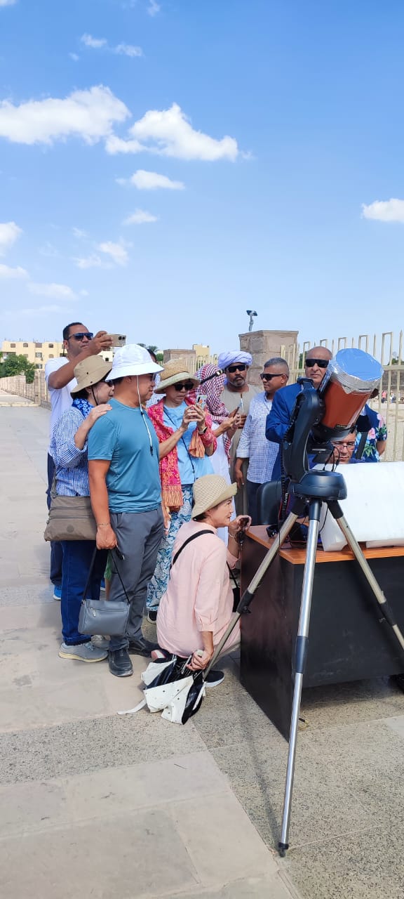 تشارك وزارة السياحة والآثار ممثلة في المجلس الأعلى للآثار في رصد ظاهرة الكسوف الجزئي للشمس، والتي تشهدها البلاد الآن، وذلك بالساحة الأمامية بمعابد الكرنك بالأقصر.