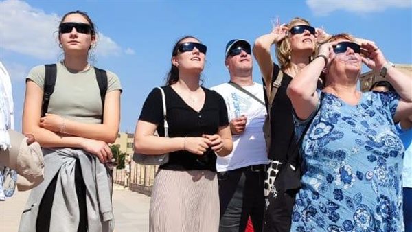 إقبال من السائحين على مشاهدة الكسوف الجزئي للشمس بمعابد الكرنك