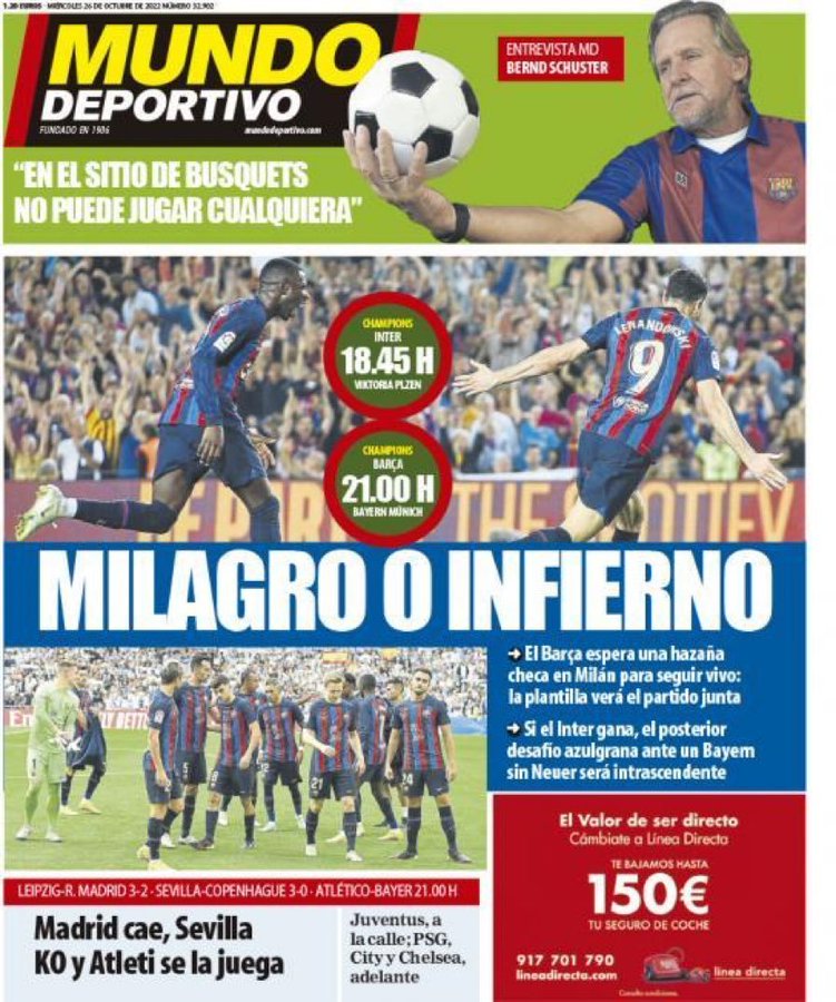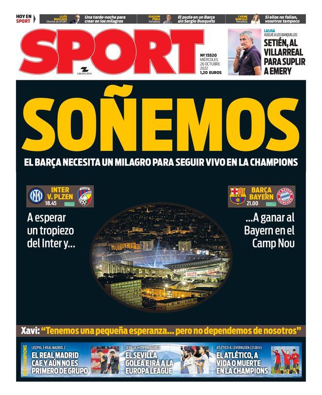 كما أشارت الصحيفة في غلافها إلى أن برشلونة عليه الإيمان والحلم بقدرته على الفوز أمام بايرن ميونخ، وحفظ حظوظه للتأهل إلى دور ثمن النهائي ببطولة دوري أبطال أوروبا.