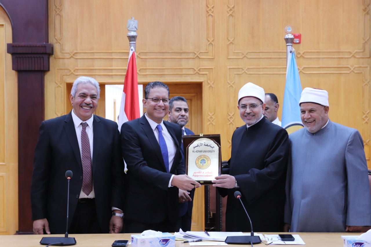 مجلس جامعة الأزهر يتسلم درع QS العالمية