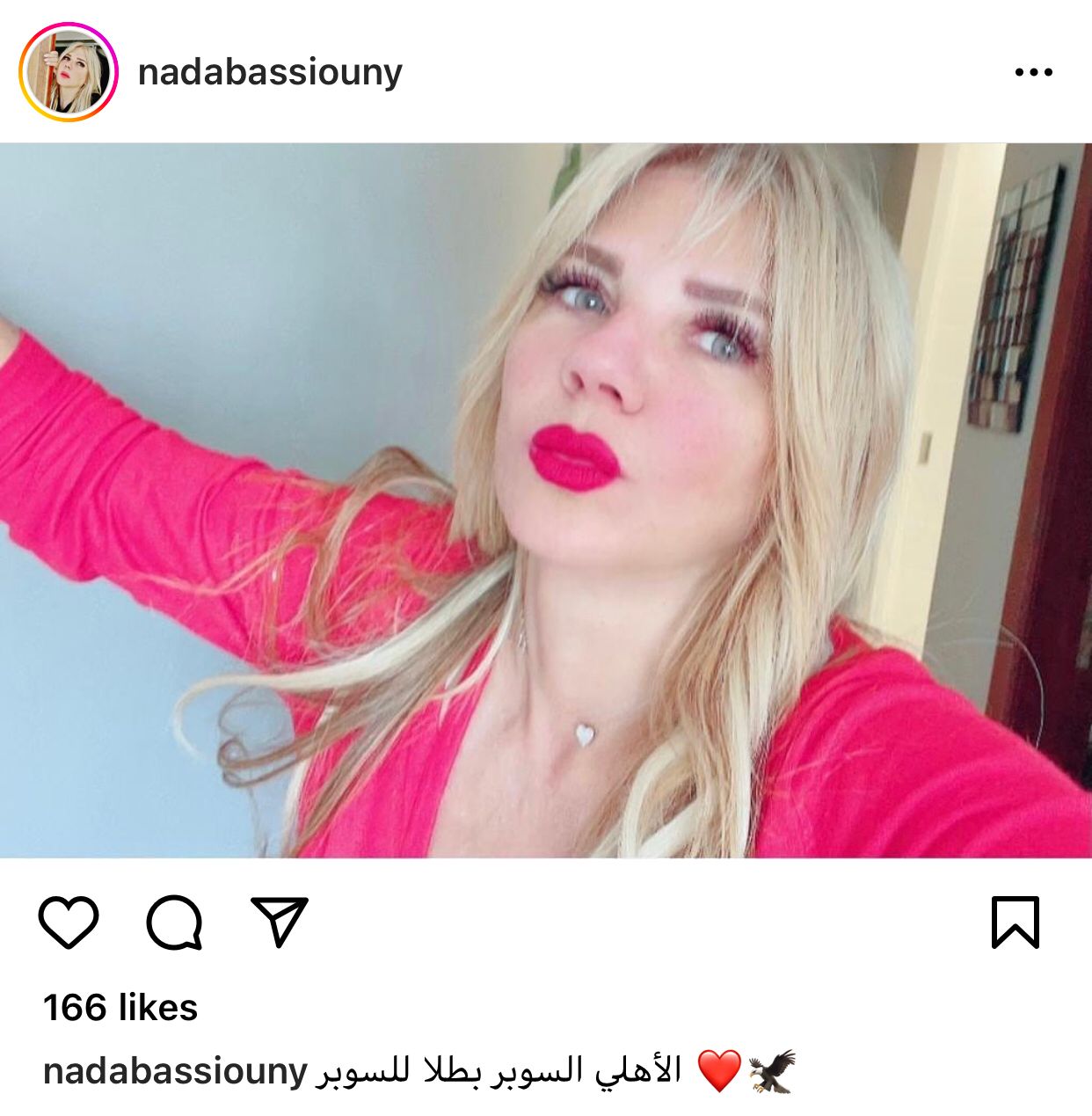 وشاركت الفنانة ندى بسيوني صورة لها مع متابعيها عبر انستجرام، وكتبت: الأهلي السوبر بطلًا للسوبر.