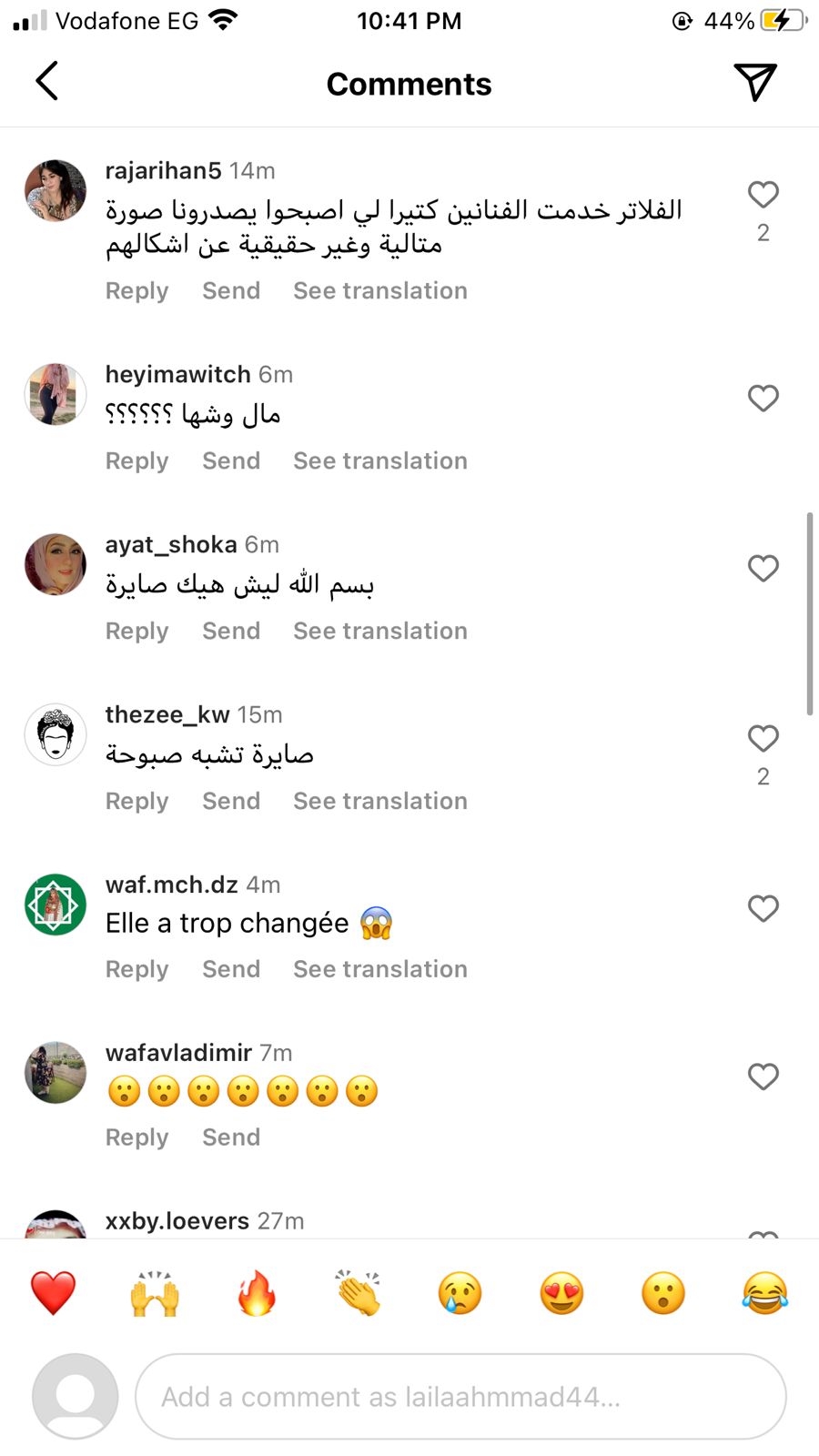وعلق متابع آخر، قائلا: يا لطيف اتشوهت من عمليات التجميل، كما كتبت إحدى المتابعات عبر انستجرام: مال وشها؟ مالها شكلها غريب كدا ليه؟