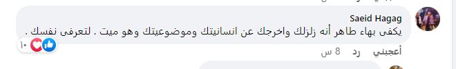 فيما علق الكاتب سعيد حجاج: يكفى بهاء طاهر إنه زلزلك وأخرجك عن إنسانيتك وموضوعيتك وهو ميت، لتعرفى نفسك.