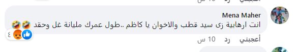 فيما كتبت لها Mena Maher: أنت إرهابية زي سيد قطب والإخوان يا كاظم.. طول عمرك مليانة غل وحقد.