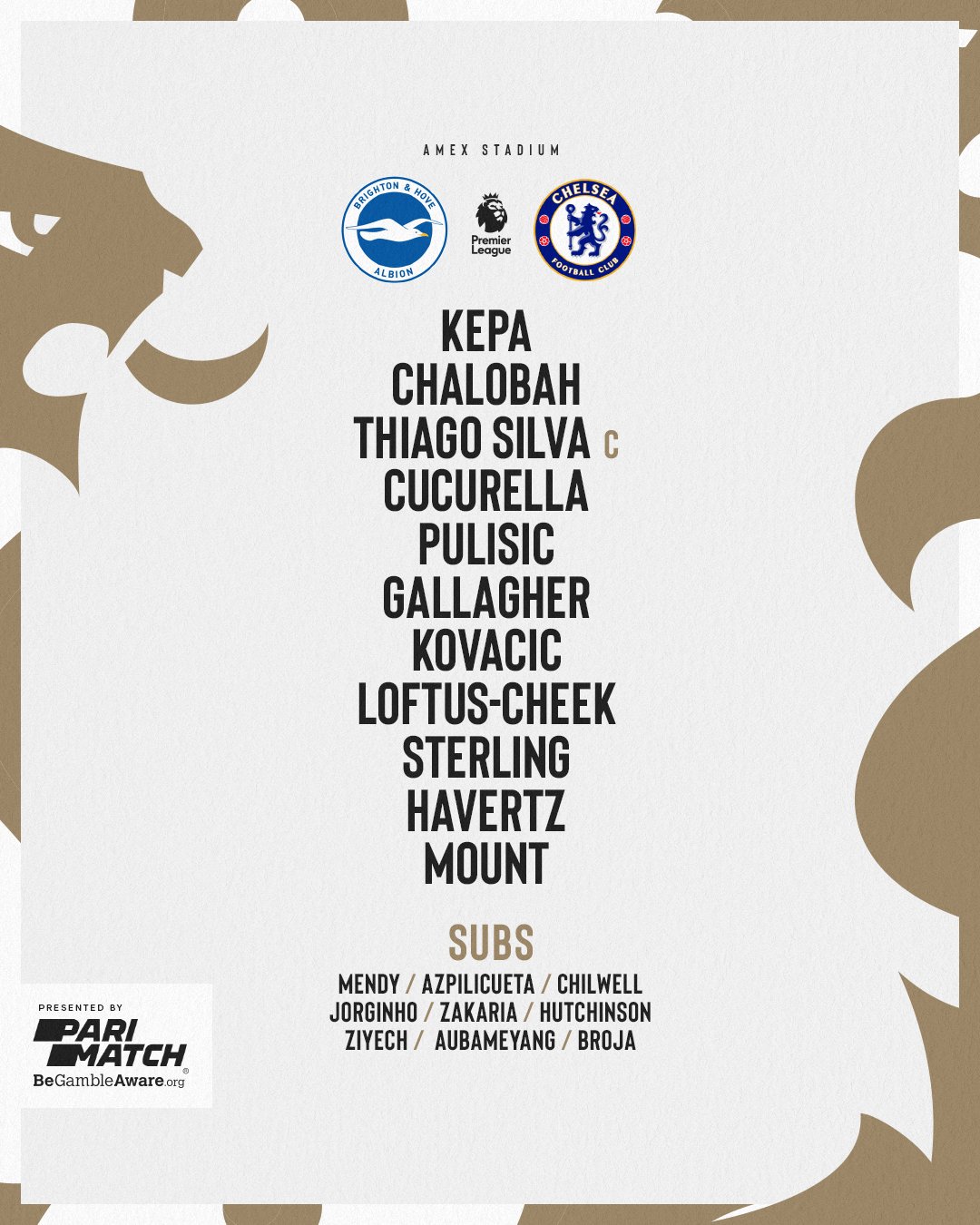 وجاء تشكيل فريق تشيلسي لمواجهة نظيره برايتون، على النحو التالي: