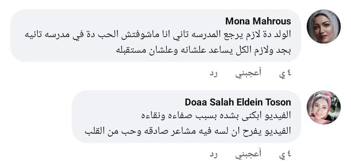 جدير بالذكر أن هذا الفيديو نال إعجاب عدد كبير من وراد موقع التواصل الاجتماعي، فيس بوك، مؤكدين على جمال الطالب والمعلمين والأصدقاء، وهم في غاية السعادة والفرحة واللطف أيضًا ووجود الود بينهم، ويجب على الطالب أن يعود إلى مدرسته مرة أخرى حتى يكون وسط الجميع دون قلق، لأن مشاعره صادقه وألا يضيع مستقبله.