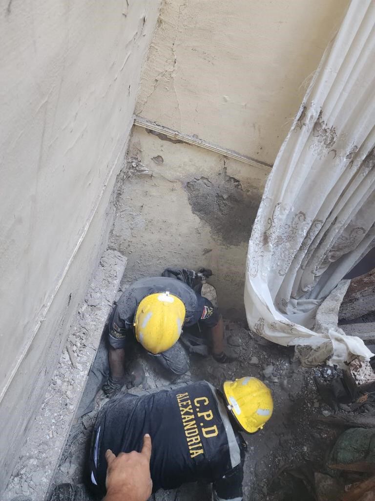 على الفور انتقلت قوات إدارة الحماية المدنية بالإسكندرية وتبين سقوط جزء من سقف إحدى الحجرات بالطابق الثانى علوى حتى الطابق الأرضى بالعقار محل الواقعة، مما أسفر عن احتجاز أحد الأشخاص قاطن بشقة بالطابق الأرضي.