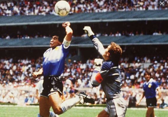 ورغم مهارة مارادونا وأهدافه الجنونية، فلا تزال اللقطة التي تُميز مسيرته الكروية على مر تاريخه المميز في الملاعب، هي تسجيله لهدف بيده في شباك منتخب إنجلترا، في المواجهة التي أقيمت ضمن منافسات ربع نهائي كأس العالم 1986 بالمكسيك.