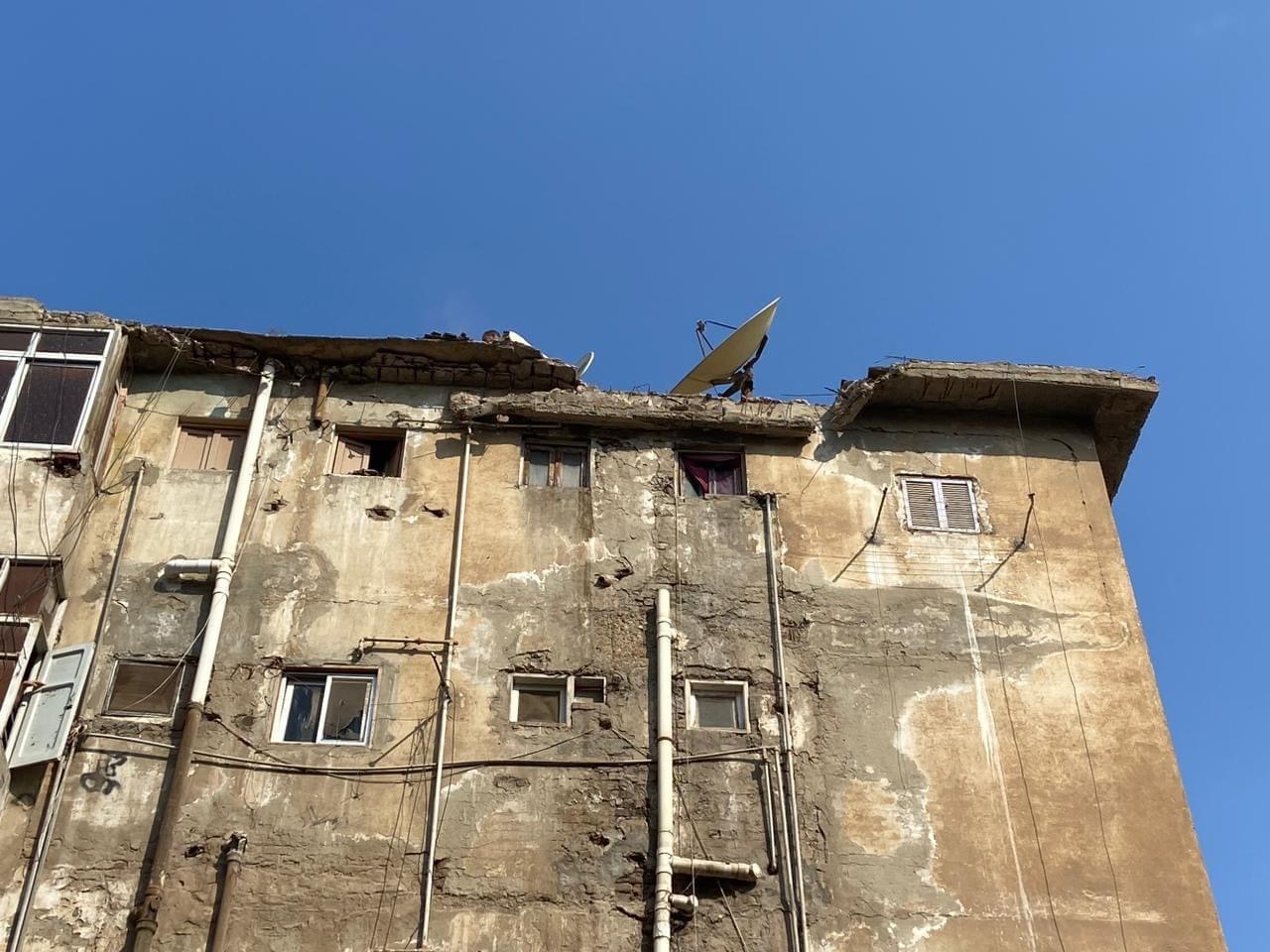وبالمعاينة تبين انهيار أجزاء من بلكونة الدور الخامس العلوي لعماره 30 بمساكن منطقة مشعل، ولم ينجم عن الحادث أي خسائر بالأرواح أو الممتلكات.