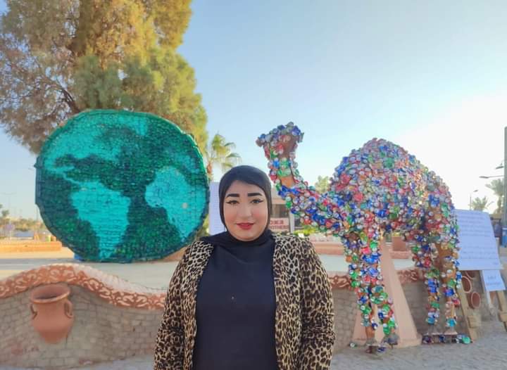 وأضافت: الجمل كان متكسر ومتبهدل، فرممته ولزقت الكانز عليه، وجمعت البلاستيك من كل مكان وعملت بيه الكرة الأرضية، ووزيرة البيئة أشادت به لما شافته، ومحافظ شرم الشيخ دعمني كتير فيه.