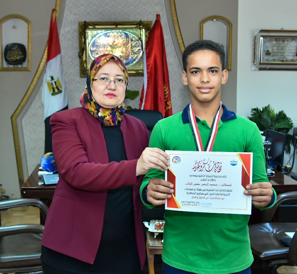 وصرحت وكيل الوزارة، بأن تكريم الطلاب جاء لمشاركتهم الإيجابية فى بطولة الجمهورية لتنس الطاولة عن العام 2022، والتي أقيمت بمنطقة أبو قير بمحافظة الإسكندرية، فى الفترة من 23 إلى 26 أكتوبر الماضي.
