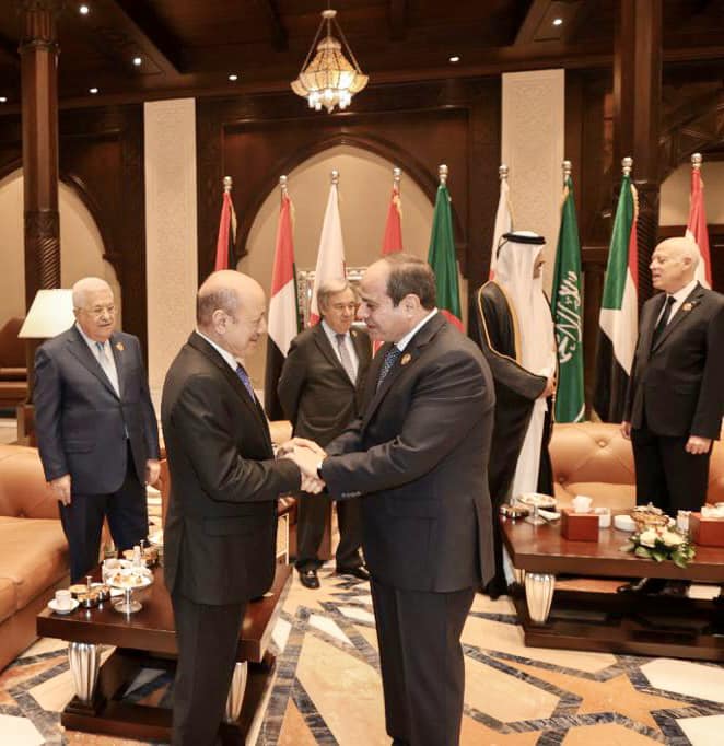 ونشرت الصفحة الرسمية للسفير بسام راضي، المتحدث باسم رئاسة الجمهورية، فيديو لمقابلات الرئيس عبد الفتاح السيسي، بالقمة العربية، حيث التقى اليوم الأربعاء، بكلًا من: عبد المجيد تبون، الرئيس الجزائري، الرئيس عبد اللطيف رشيد، رئيس جمهورية العراق، الرئيس قيس سعيد، رئيس الجمهورية التونسية، الأمير الحسين بن عبد الله، ولي عهد المملكة الأردنية الهاشمية، الرئيس حسن شيخ محمود، الرئيس الصومالي، وأيضًا رشاد العليمي، رئيس مجلس القيادة الرئاسي اليمني.