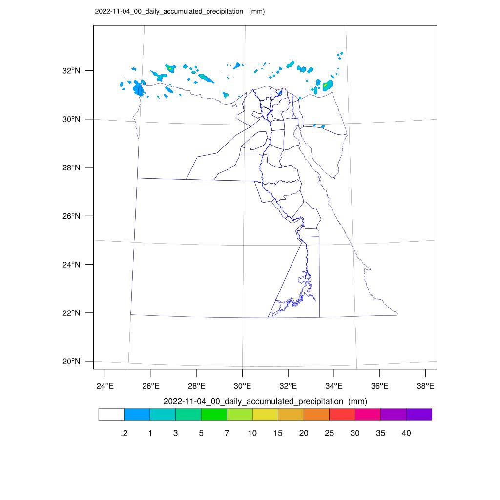 وأضاف مركز التنبؤ بالفيضان، أن مناطق متفرقة من السواحل الشمالية الشرقية، قد تتعرض لسقوط أمطار خفيفة يوم السبت 5 نوفمبر، منوهًا بأن توقعاته تأتي بعد دراسة دقيقة لنماذج مخرجات الأمطار بقطاع التخطيط في مركز التنبؤ بالفيضان.