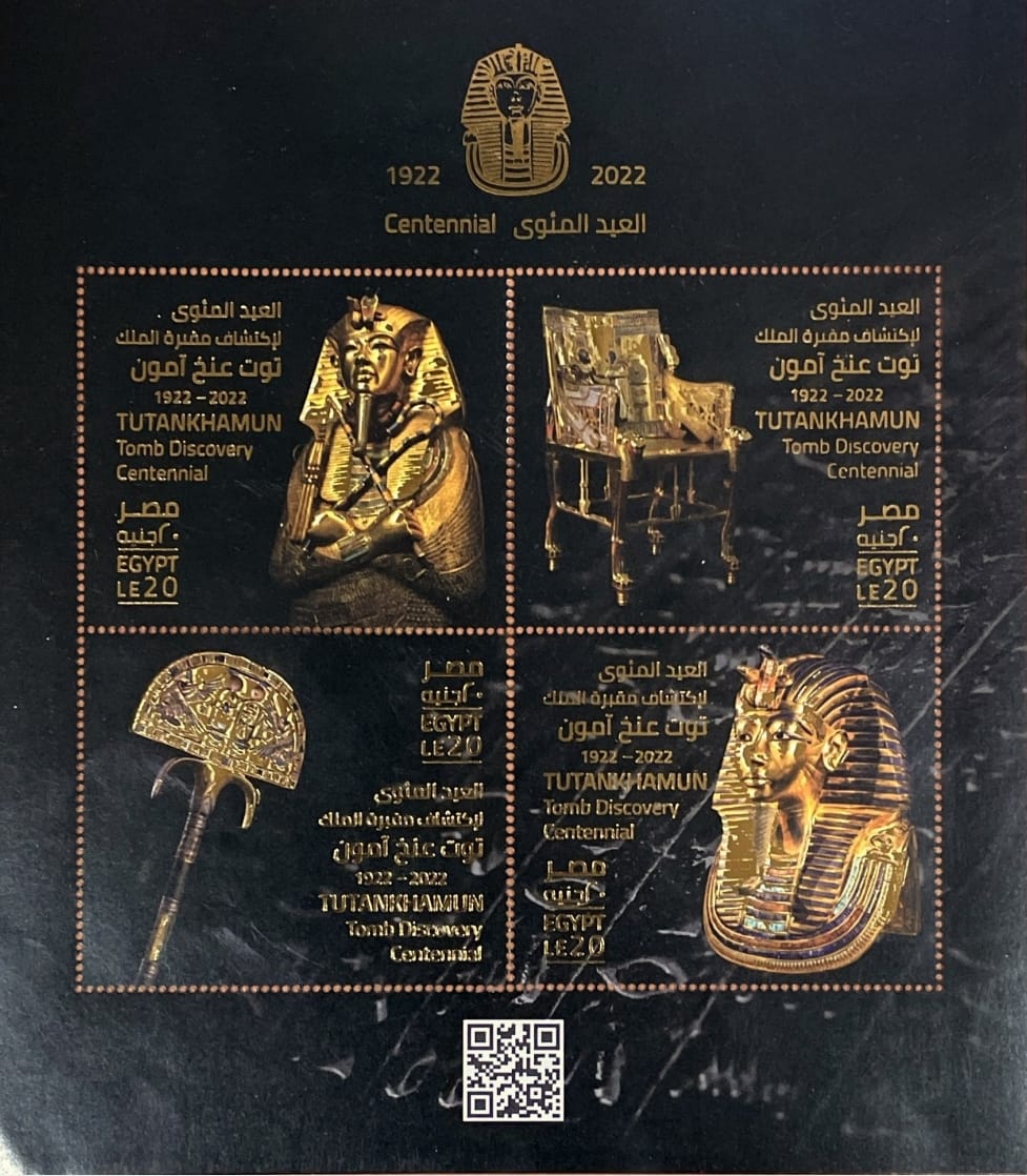 وجدير بالذكر أن مجموعة طوابع مرور 100 عام على اكتشاف مقبرة الملك توت عنخ آمون، مكونة من 4 طوابع، مقاس كل طابع منها 5 سم في 6 سم، مؤمنة ضد التزييف، متعددة الألوان، قيمة كل طابع 20 جنيهًا، ومزود بتقنية الـ QR code التي تمكن هواة الطوابع والمتابعين من الحصول على جميع المعلومات المتعلقة بالطوابع، والمناسبة التي تم إصدارها فيها.