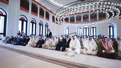 شيخ الأزهر يؤدي صلاة الجمعة مع جلالة ملك البحرين بجامع قصر الصخير