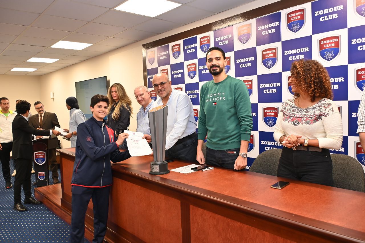 جنى خميس، صاحبة الميدالية البرونزية في منافسات فردي الكاتا والميدالية الفضية في منافسات جماعي كاتا، ومحمود الحبشي الحاصل على المركز الخامس في منافسات فردي وجماعي كاتا، ومحمد حسن الحاصل على المركز الخامس كاتا جماعي، بالإضافة إلى اللاعب الناشيء زين الدين محمد الحاصل على المركز التاسع فردي كاتا ناشئين، كما تم تكريم المدير الفني لنادي الزهور محمود ربيع، ومدرب اللاعبين إسلام الزيني، والمدرب العام هاني محمود.