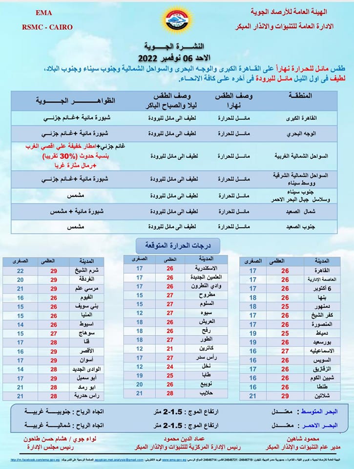 حالة الطقس غدا الأحد 6 نوفمبر 2022