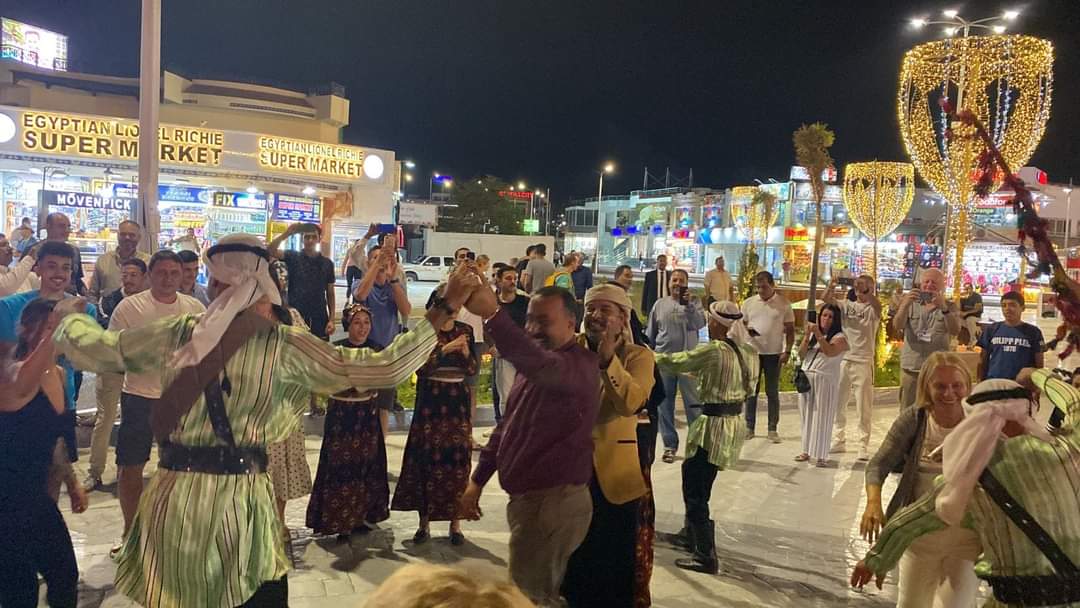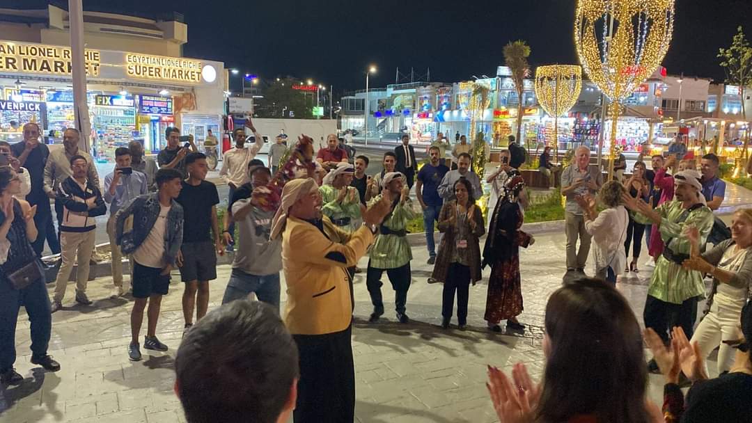 شهدت الخيمة البدوية بخليج نعمة بمدينة شرم الشيخ إقبال ضيوف مؤتمر المناخ وتفاعلهم مع الأغاني البدوية السيناوية ومع فرقة العريش الفنون الشعبية.