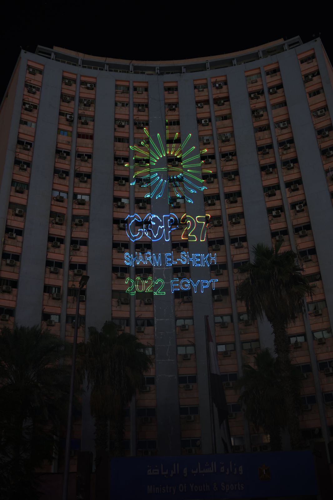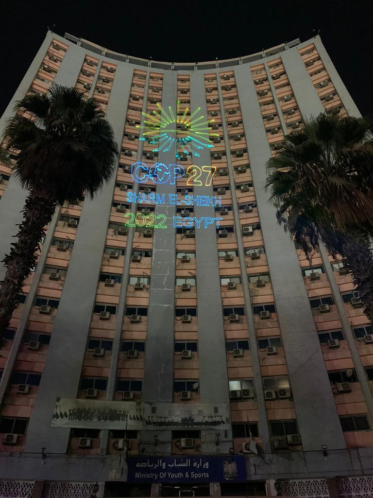 مبنى وزارة الشباب والرياضة يتزين بشعار قمة المناخ COP27 │ صور