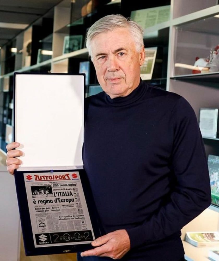 ونشر نادي ريال مدريد عبر حسابه الرسمي على موقع التواصل الاجتماعي تويتر، منذ قليل، صورًا لتسلم كريم بنزيما وأنشيلوتي جوائز الأفضل في العام الجاري، من صحيفة توتو سبورت الإيطالية، والتي تمنحها سنويًا.