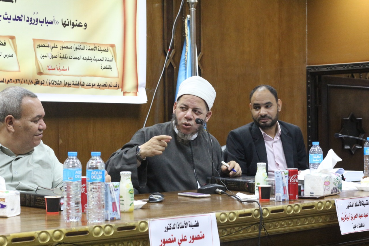 وتكونت لجنة المناقشة من: الدكتور منصور علي منصور، أستاذ الحديث وعلومه المساعد بكلية أصول الدين جامعة الأزهر بالقاهرة مشرفا أصليا، والدكتور أحمد رزق درويش، مدرس الحديث وعلومه بكلية أصول الدين بالقاهرة مشرفا مشاركا، والدكتور محمد عيد أبو كُريم، أستاذ الحديث وعلومه المساعد بكلية أصول الدين بالقاهرة مناقشا داخليا، والدكتور إبراهيم علي السيد عيسى، أستاذ الحديث وعلومه ورئيس قسم الحديث بكلية أصول الدين بالزقازيق مناقشا خارجيا، وأثنت اللجنة المناقشة على الرسالة، مؤكدين أنها تضمنت ميزات عديدة، يمكن البناء عليها فيما بعد.