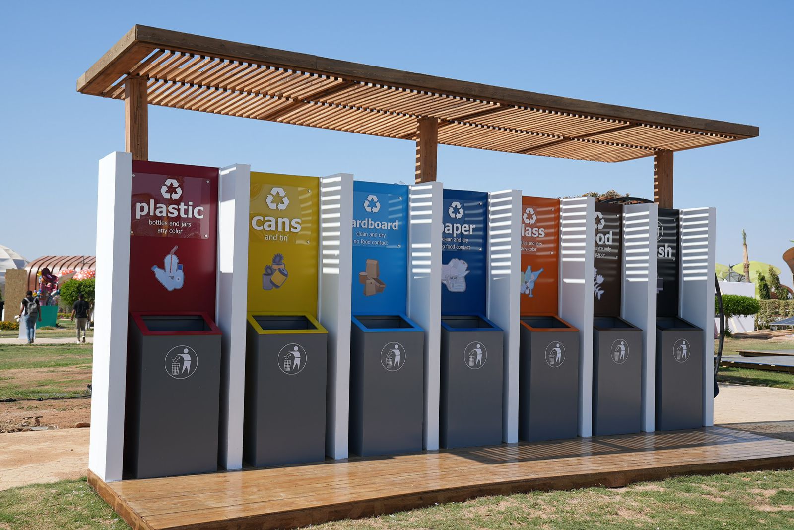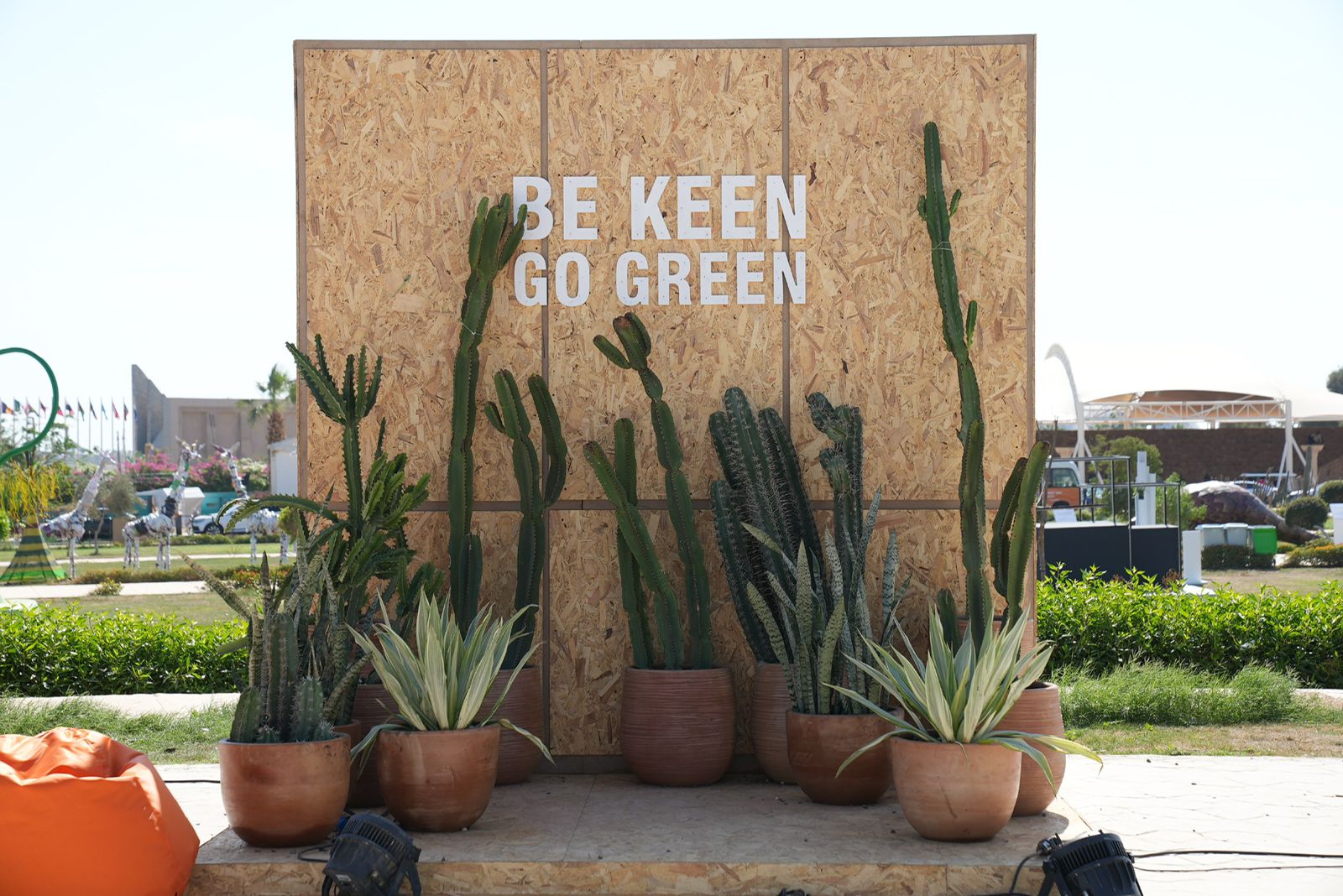 واستمرارًا للرؤية المصرية الشاملة للحفاظ على البيئة، وفرت المنطقة الخضراء صناديق للقمامة مُقسمة للنفايات المختلفة؛ من أجل التيسير على الزوار وعمال النظافة والحفاظ على البيئة والمُناخ، وتحذيرًا من مخاطر النفايات الكهربائية انشأ مجموعة من الشباب شجرة تحذيرية مكونة من النفايات الكهربائية غير القابلة للتدوير؛ للتحذير والتذكرة للزوار بخطورة تلك النفايات، وكذلك الاهتمام بالفن التشكيلي من خلال الأشكال المكونة من النفايات والبلاستيك وكوتشات السيارات والعجل، واستغلالها وإعادة تدويرها للحفاظ على البيئة والمناخ بدلًا من إلقاءها وضررها للبيئة.
