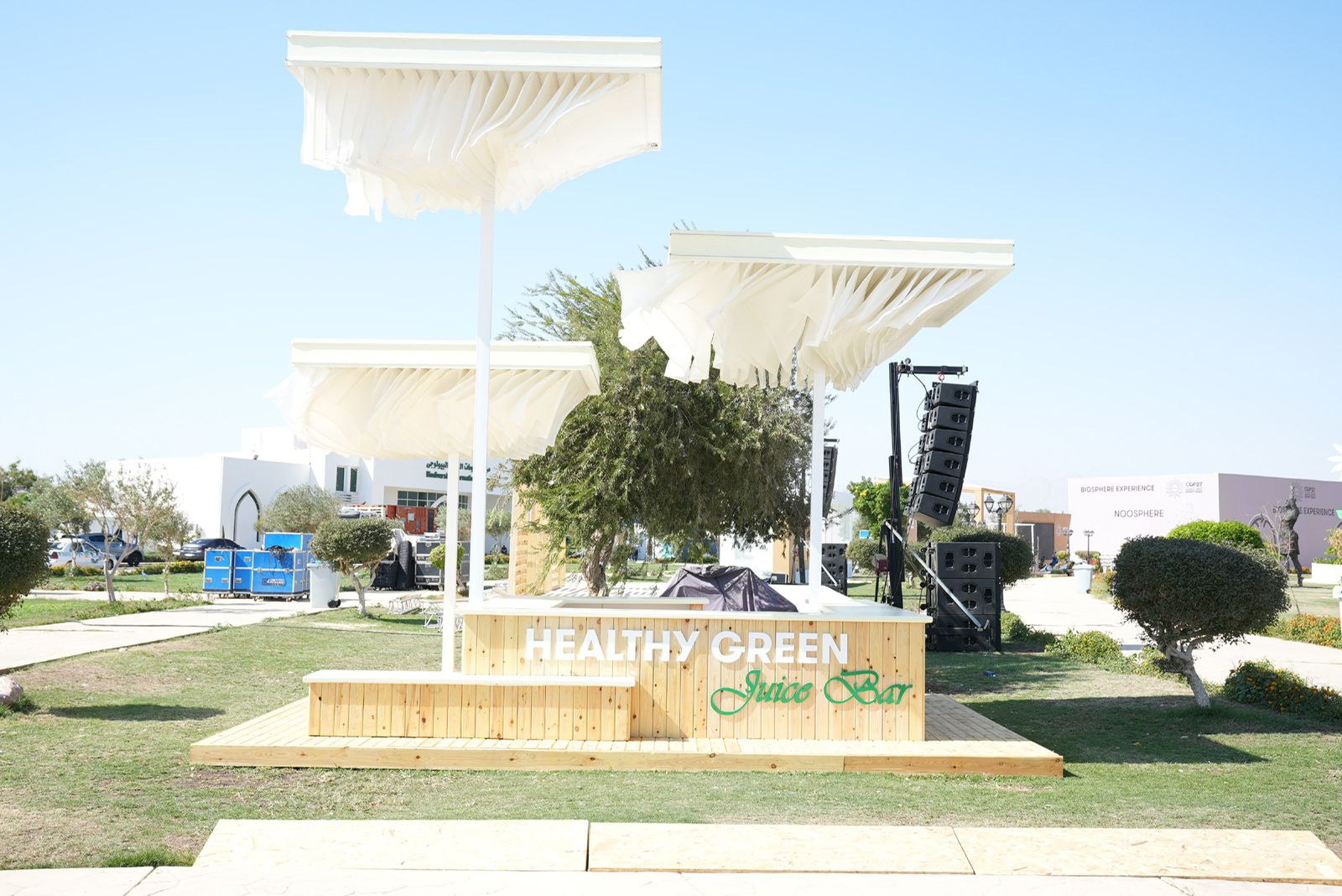 وتتميز المنطقة الخضراء بوجود عدد من المناطق الجذابة للتصوير وأيضًا المشاريع المُبتكرة من الشباب المصريين تماشيًا مع رؤية مصر نحو مستقبل أكثر استدامة وصديق للبيئة، وتتميز المنطقة بوجود المسرح الروماني المُجهز للعرض الافتتاحي وجميع العروض المسرحية؛ وهو مسرح مفتوح مُصمم على الطريقة الرومانية القديمة ومُغطى السقف للحماية من أشعة الشمس الشديدة، كما تتميز بوجود منطقة «السبع غرف»، وهي غرف محاطة من الداخل بشاشات عرض للتثقيف عن طبقات الغلاف الجوي والبيئة والمُناخ، ولكل غرفة تحمل موضوع واحد مدون عليها اسم العرض الخاص بها من الخارج.