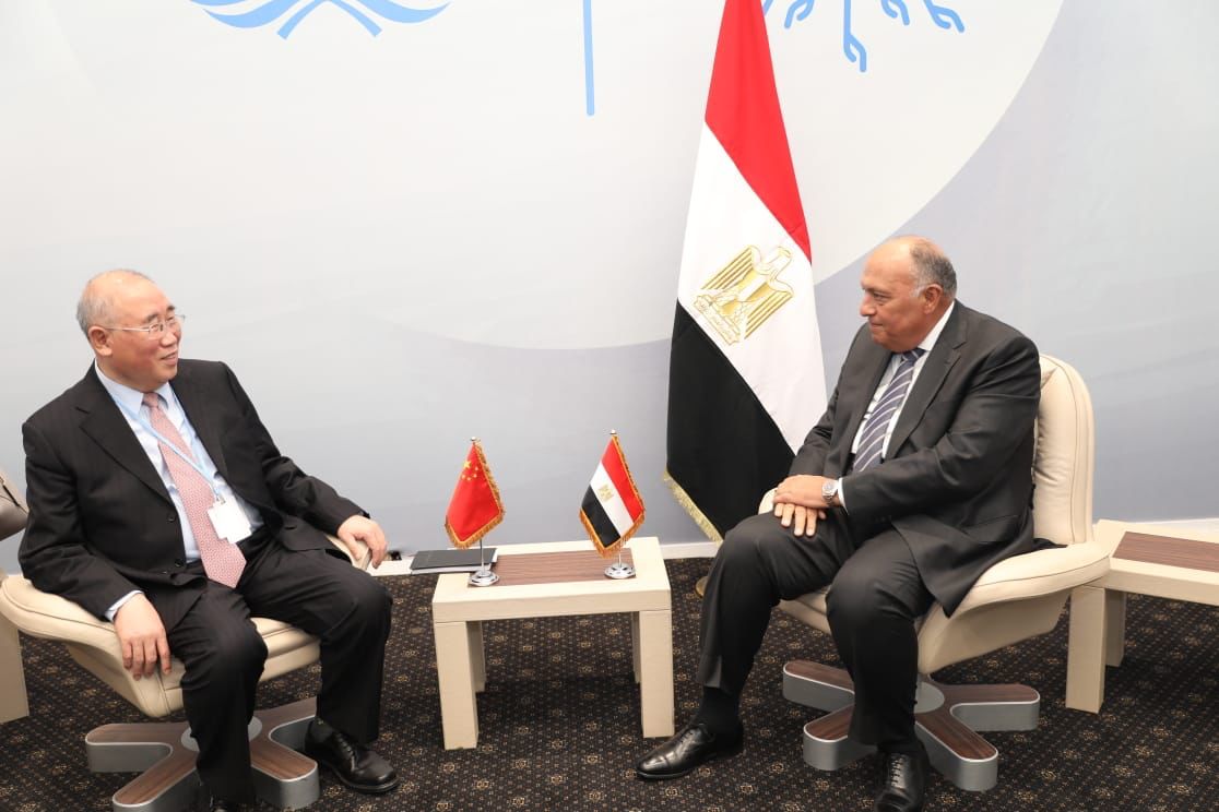 استقبل سامح شكري، وزير الخارجية الرئيس المعين للدورة 27 لمؤتمر أطراف اتفاقية الأمم المتحدة الإطارية لتغير المناخ COP27، اليوم شي شينهوا مبعوث المناخ الصيني.