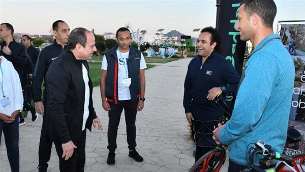 وشارك الرئيس السيسي في ماراثون ركوب الدراجات مع مجموعة من الشباب المشارك في المؤتمر، لإرسال رسالة للعالم حول أهمية الحفاظ على البيئة، حيث يوجد بالمنطقة الخضراء عدد من الأنشطة الرياضية الصديقة للبيئة مثل الدراجات الكهربائية وغيرها من الأنشطة.