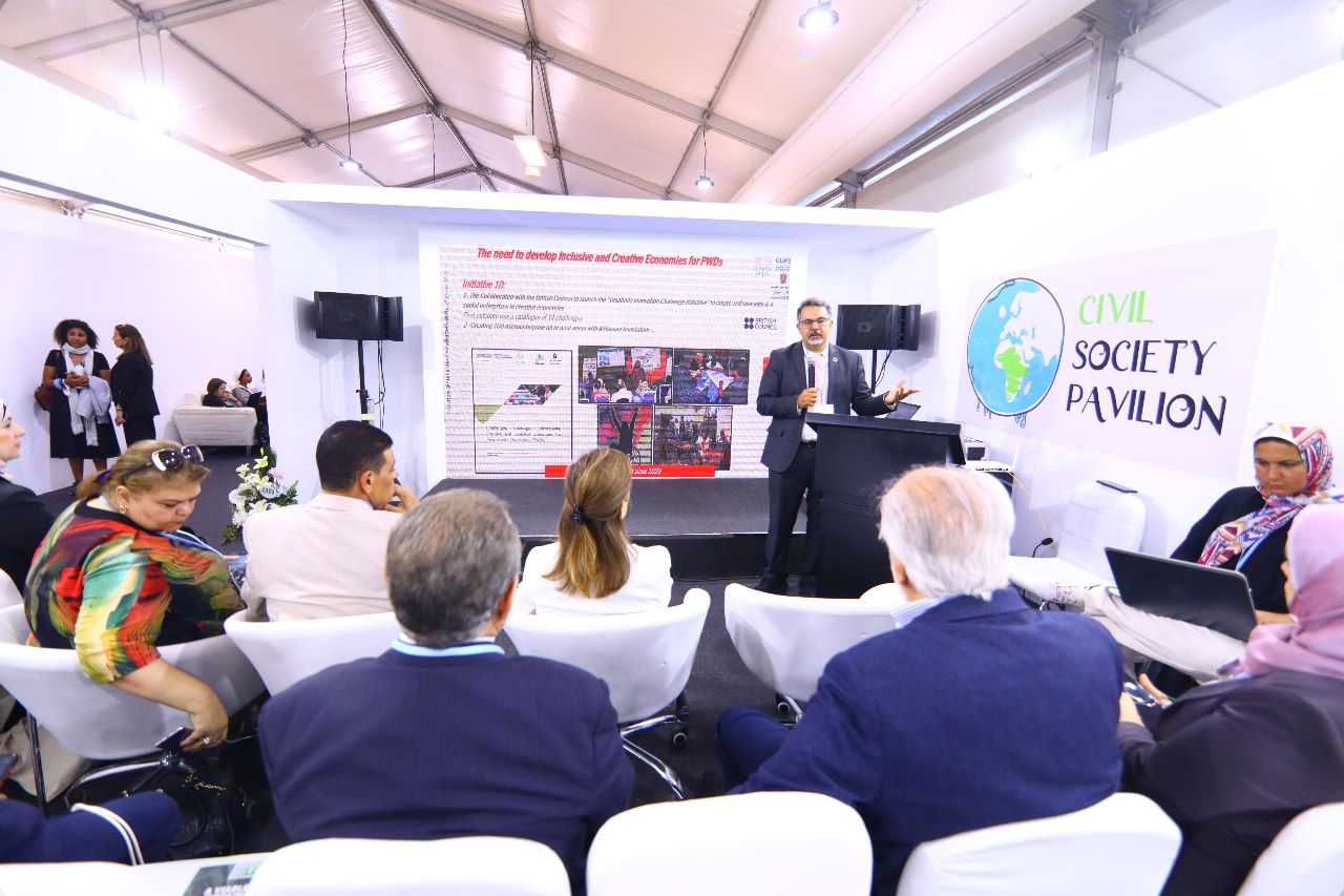 عرضت وزارة التضامن الاجتماعي تجربة مصر الرائدة في التطوير والابتكار في تمكين الفقراء في المناطق الريفية وإطلاق العنان لإمكانيات المرأة في المجتمعات الريفية المصرية، وذلك في واحدة من فعاليات قمة مؤتمر أطراف اتفاقية الأمم المتحدة الإطاریة بشأن تغیر المناخ 27 COP في شرم الشيخ بالمنطقة الزرقاء.