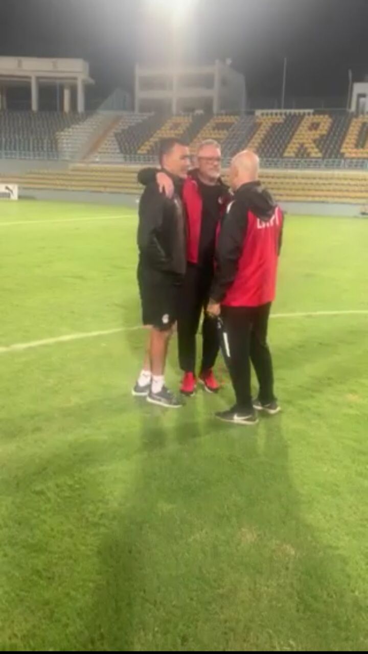 بعد انتهاء خلافهما الأخير.. أجواء ودية بين الحضري وميكالي في مران المنتخب الأولمبي | صورة
