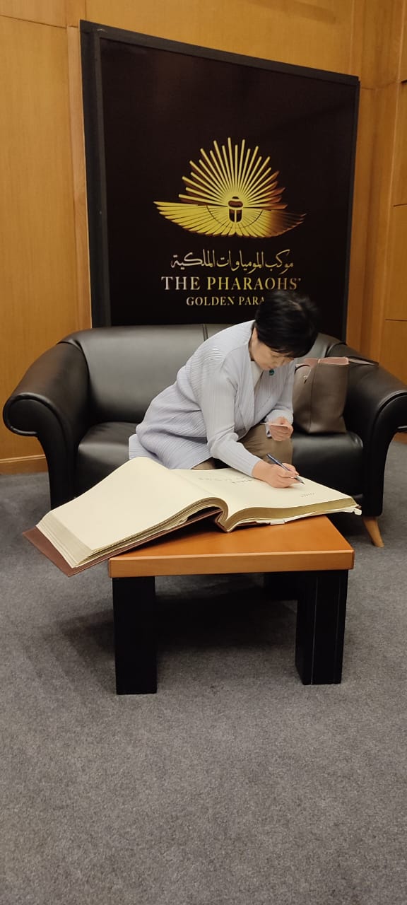 وفى نهاية الزيارة تبادل الطرفان الهدايا التذكارية، كما حرصت يوريكو كويكى على تسجيل كلمة بدفتر الزيارات، أعربت خلالها عن إعجابها الشديد بالمتحف ومقتنياته الفريدة، وطرق العرض المتحفي الحديثة، وبالغ تقديرها لهذا الصرح العظيم.