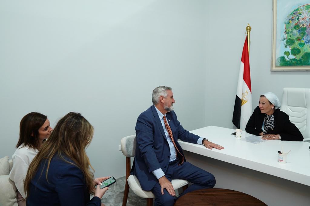 ودعت الدكتورة ياسمين فؤاد؛ إريك لزيادة المنطقة الخضراء الخاصة بالمؤتمر بشرم الشيخ، لمشاهدة المشروعات التي تم تنفيذها هناك وقصص النجاح المعروضة، مؤكدة ضرورة تبادل المعلومات بين الطرفين حول تكنولوجيا النقل وعرض الوظائف الخضراء هنا في مصر، حيث يوجد لدى مصر خِطة طموحة متطورة حول استراتيجية الحد من التغير المناخي؛ تتضمن وتربط جميع القطاعات من زراعة ومياه وطاقة، وليس فقط التكيف والتخفيف.