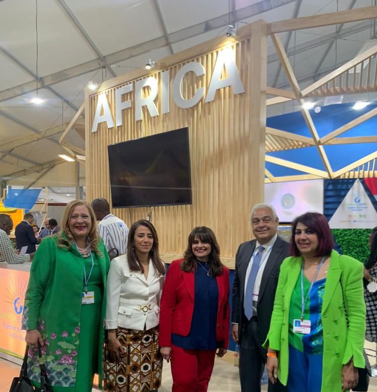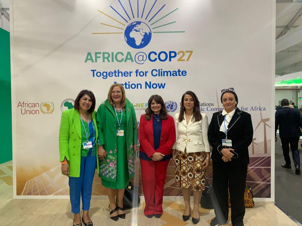 تفقدت السفيرة سها جندي وزيرة الهجرة المنطقة الزرقاء بمؤتمر المناخ في شرم الشيخ، حيث التقت الدكتورة أماني عصفور، رئيس مجلس أعمال إفريقيا، المنتخبة بقرار من القمة الإفريقية، ورئيس الاتحاد الدولي لرائدات الأعمال وإحدى رائدات مصر تستطيع ورئيسة مجلس أعمال السوق المشتركة لشرق وجنوب إفريقيا، كوميسا، وكذلك عدد من سيدات الأعمال البارزات من عدد من الدول الإفريقية الشقيقة.