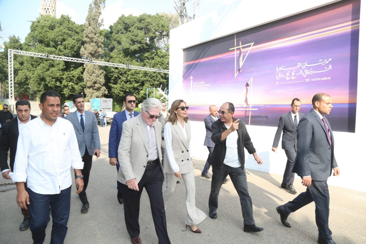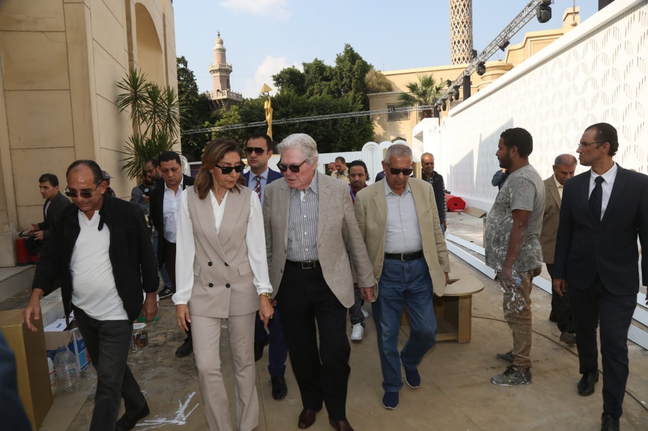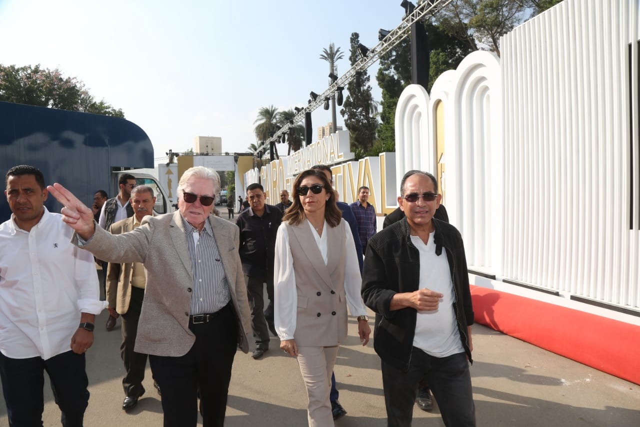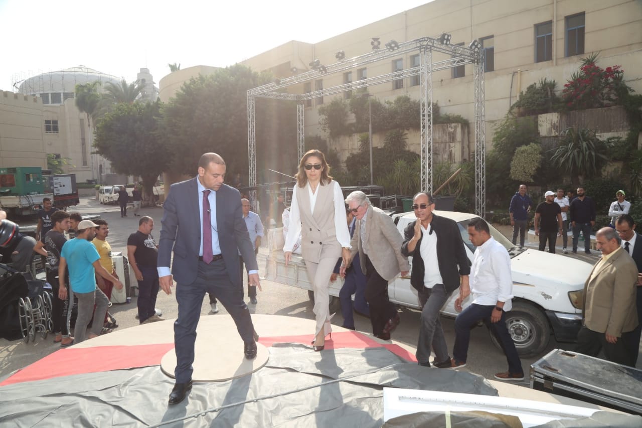 وزيرة الثقافة والفنان حسين فهمي يتفقدان اللمسات النهائية لتجهيزات افتتاح مهرجان القاهرة السينمائي الدولي
