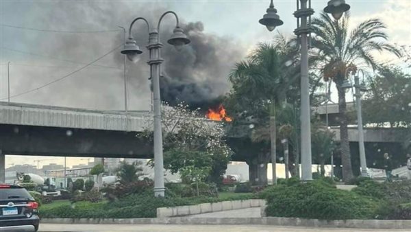 اشتعال النيران في سيارة أعلى كوبري محرم بك بالإسكندرية