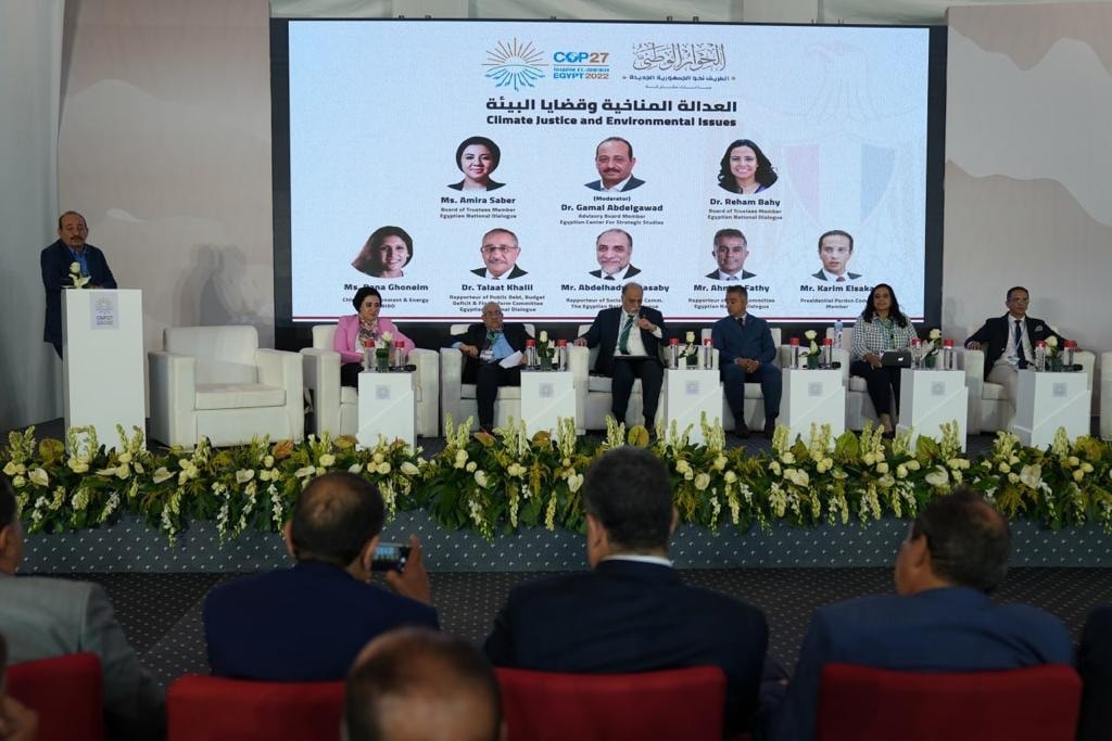 نظم الحوار الوطني جلسة نقاشية حول العدالة المُناخية وقضايا البيئة، اليوم السبت الموافق 12 نوفمبر 2022، بقاعة DOME 2 بالمنطقة الخضراء، وذلك بحضور من أعضاء الحوار الوطني وبمشاركة فعّالة من المُشاركين بمؤتمر المناخ COP27.
