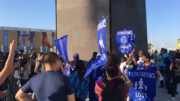 وتظاهر اليوم عدد من المشاركين في فعاليات مؤتمر الأطراف لاتفاقية الأمم المتحدة لتغير المناخ في دورته السابعة والعشرين COP27، المنعقدة فعالياته حاليا في مدينة شرم الشيخ، مطالبين بالتعويضات المناخية، والتزام الدول الصناعية المتسببة في ظاهرة الاحترار العالمي بالدفع مقابل ما سببوه من خسائر وأضرار للدول المنخفضة في انبعاثاتها الكربونية.