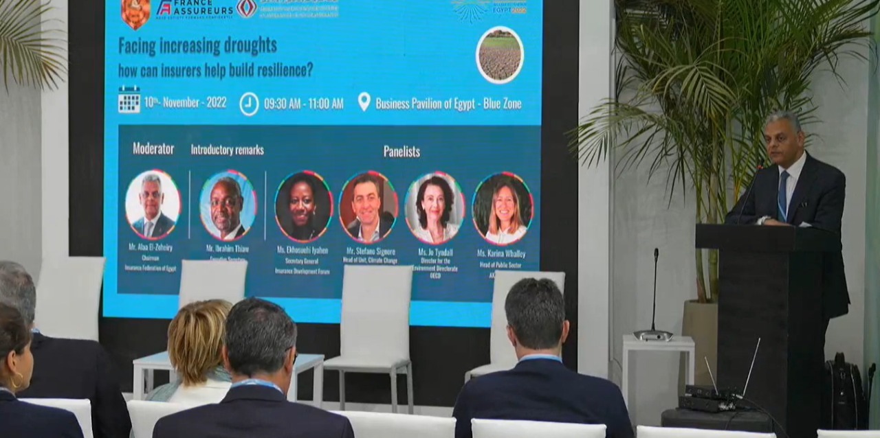 وعرض كلا من فلورينس لاستمان رئيس الاتحاد الفرنسى لشركات التأمين ومحمد بن صالح رئيس الاتحاد المغربي لشركات التأمين وإعادة التامين وعلاء الزهيرى رئيس الاتحاد المصري للتأمين كلا من التجربة الفرنسية والمغربية والمصرية فى التعامل مع قضايا مناخ؛ حيث تم إلقاء الضوء على الجهود التى تم بذلها لمواجهة هذه الأخطار من خلال التنسيق بين الدولة والقطاعين العام والخاص.
