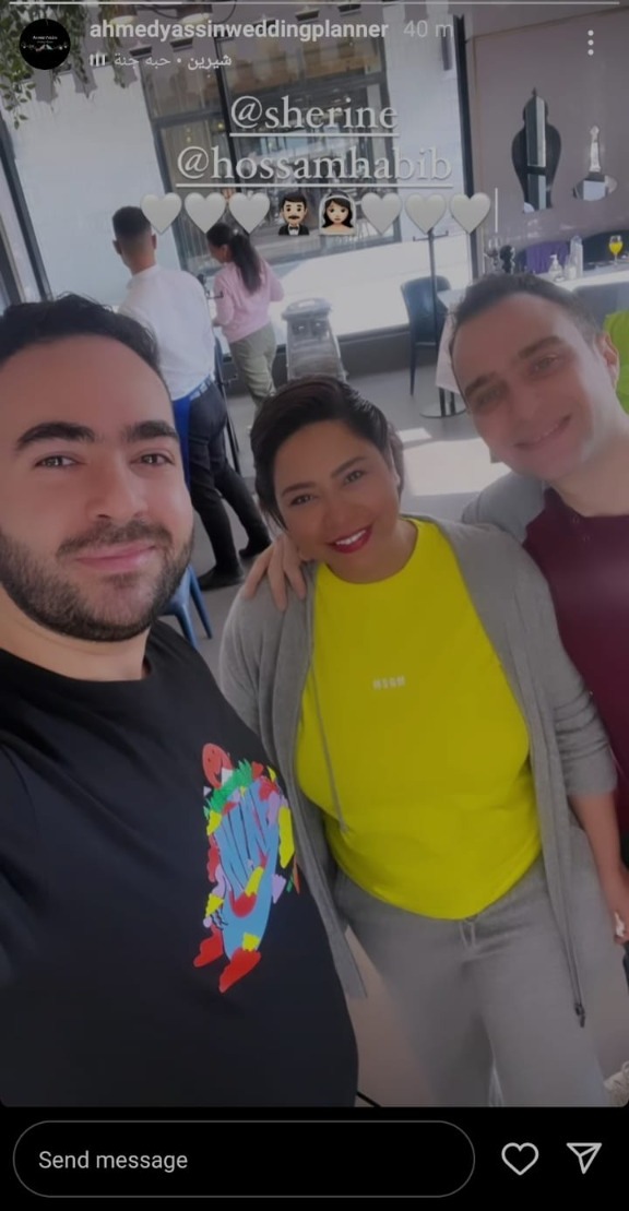 أثار الثنائي شيرين عبد الوهاب وحسام حبيب، الكثير من تساؤلات الجمهور خلال الساعات الماضية، بعد ظهورهم سويا مع أحمد ياسين منظم حفلات، ما جعله الجمهور يرجح إقامة حفل زفاف للثنائي قريبًا.