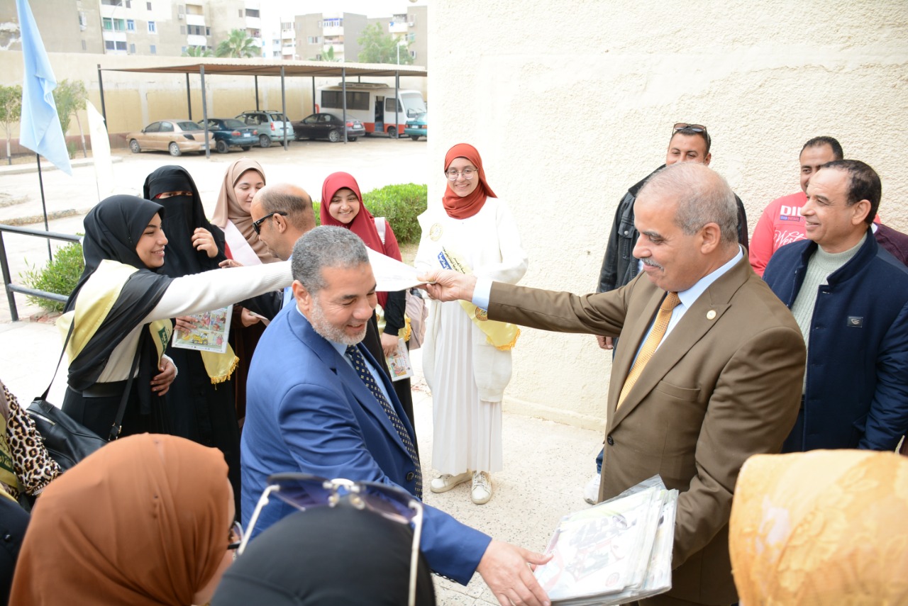 وفد المنظمة العالمية لخريجي الأزهر يفتتح معرضًا للملابس والمشغولات اليدوية بكلية الدراسات الإسلامية بنات ببني سويف