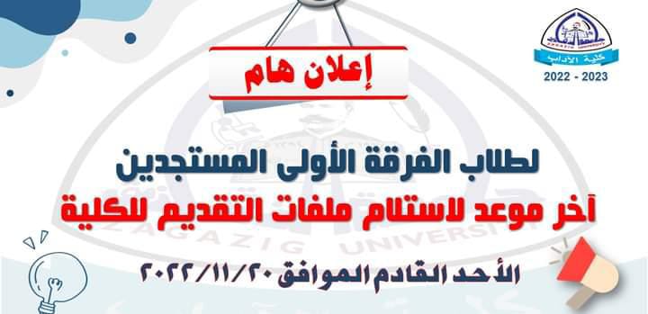 ننشر آخر موعد لتسلم ملفات التقديم لطلاب الفرقة الأولى بآداب الزقازيق