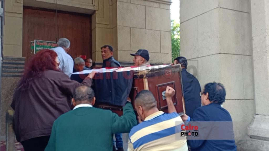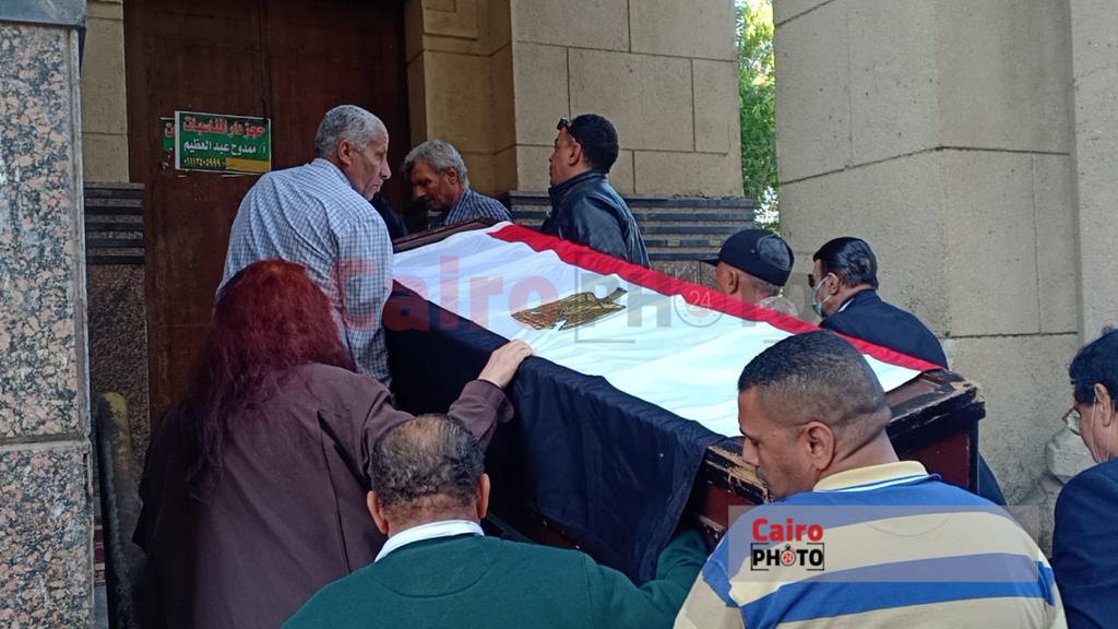 ووصل الجثمان لـ مسجد عمر مكرم، استعدادًا لـ صلاة الجنازة، وظهر النعش ملفوفًا بـ علم مصر، كما أوصى الموسيقار قبل رحيله.