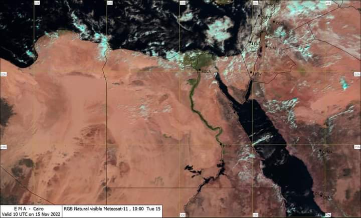 وأضافت هيئة الأرصاد في بيان لها: من المتوقع أن تمتد خفيفة إلى مناطق متفرقة من جنوب الوجه البحرى ومدن القناة مع تقدم الوقت.