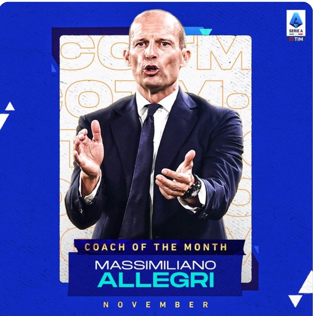 أعلن الاتحاد الايطالي لكرة القدم، فوز ماسيمليانو أليجري المدير الفني لفريق يوفنتوس بجائزة أفضل مدرب في الدوري الإيطالي، خلال شهر نوفمبر الحالي.