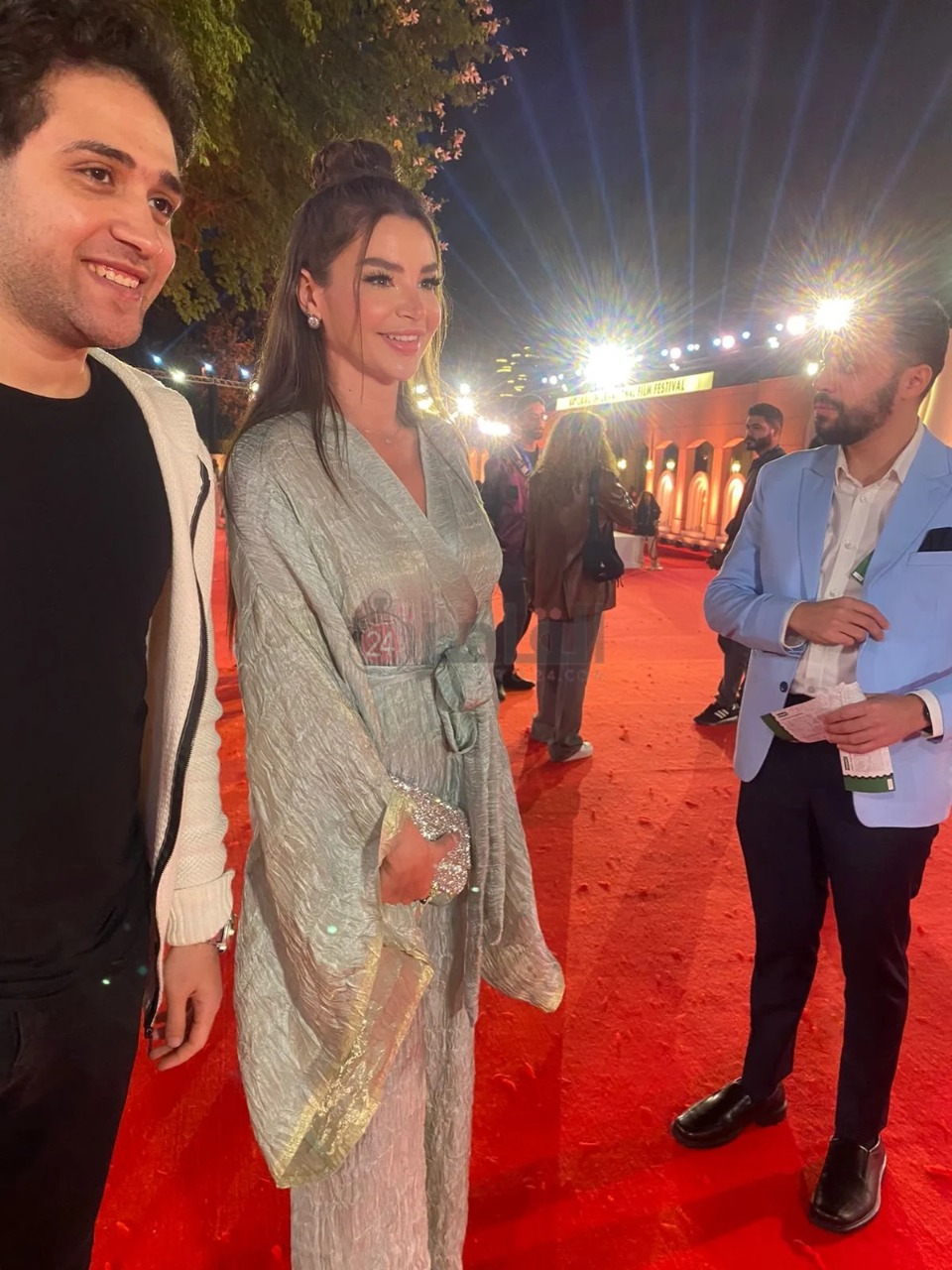 كما ظهر أحمد الفيشاوي بـ استايل بسيط وبنطال جينز، وذلك بعدما ظهر بـ بدلة وردية اللون في حفل افتتاح المهرجان، كما وجه الفيشاوي تحية للصحفيين والمصورين في مهرجان القاهرة السينمائي وقدم حركات استعراضية على الريد كاربت.
