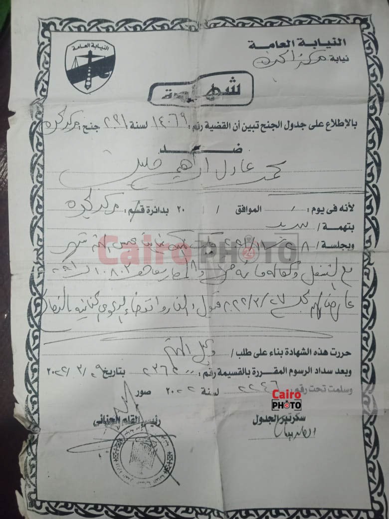 عامل نظافة كشري التحرير يعارض على الأحكام الصادرة ضده بعد القبض عليه | مستندات