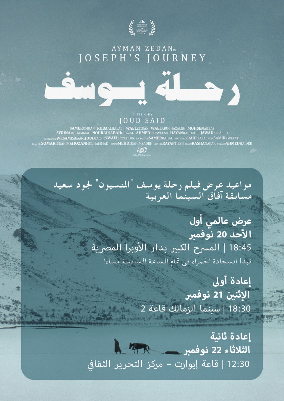 يتناول المخرج جود سعيد، في أحدث أفلامه رحلة يوسف المنسيون، العديد من الموضوعات الإنسانية، والتي يتعمق من خلالها في النفس البشرية وردود أفعالها، وينافس بالفيلم في مسابقة آفاق السينما العربية ضمن فعاليات الدورة 44 من مهرجان القاهرة السينمائي الدولي، والمقرر إقامته في الفترة ما بين 13 وحتى 22 نوفمبر المقبل.